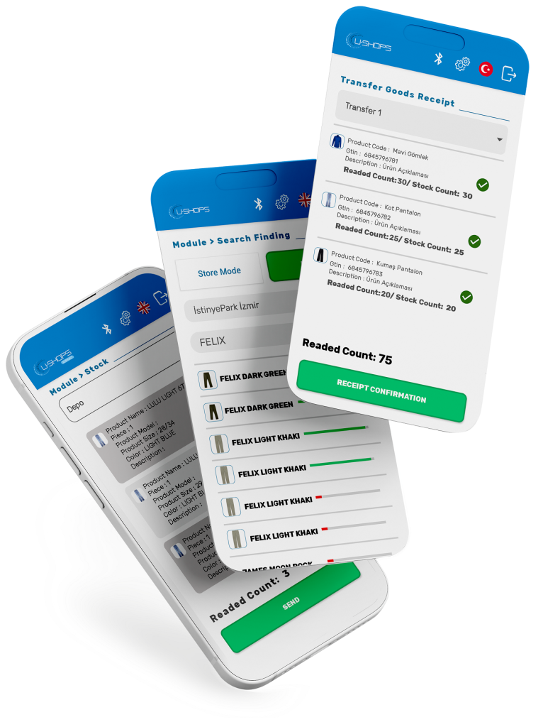 U-Shops profesyonel mağazacılık yönetim yazılımı, RFID teknolojisini en üst seviyede kullanır. Ürün ilk üretildiği andan, müşteriye ulaşana kadar takip edilir. Hızlı arama bulma, sayım, mal kabul, satış ve güvenlik alarmı, en öne çıkan özelliklerinden birisidir.